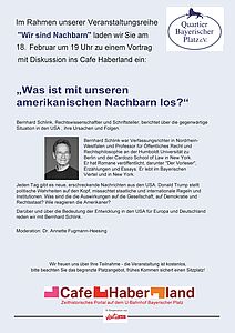 "Was ist mit unseren amerikanischen Nachbarn los?" laden wir Sie herzlich ins Cafe Haberland ein.