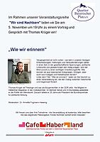 Wir laden Nachbarinnen und Nachbarn zu unserem monatlichen Stammtisch ein, der jeden 1. Montag im Monat ab 19 Uhr im Cafe Haberland stattfindet. Wir treffen uns in ungezwungener Runde zum Gespräch und zum Austausch und bieten die Möglichkeit, die Nachbarschaft kennen zu lernen.und Kontakte zu knüpfen.